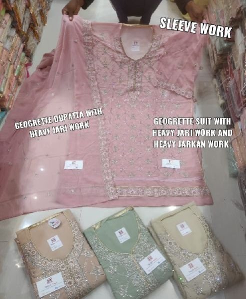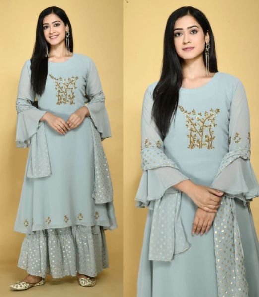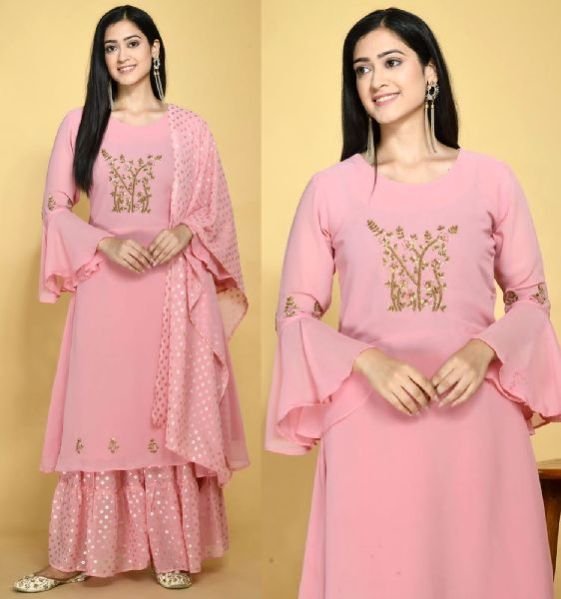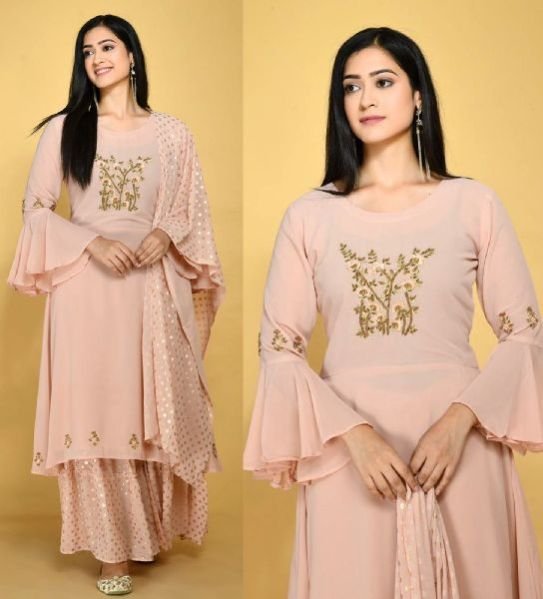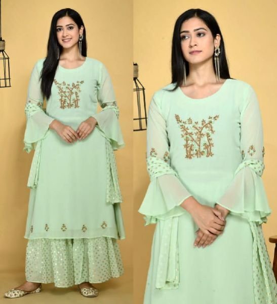 Plazzo - Real georgette with dull santoon inner ( free size stitched)