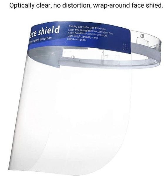 faceshield - made of clear plastic and provides good visibility to both the wearer and the patient