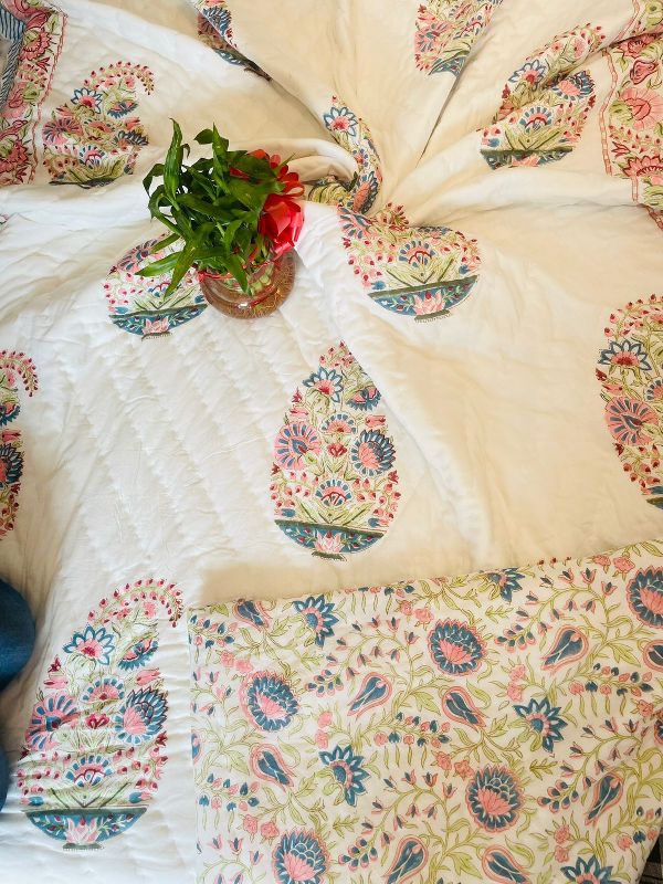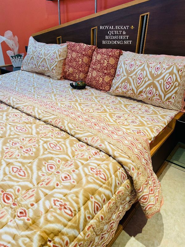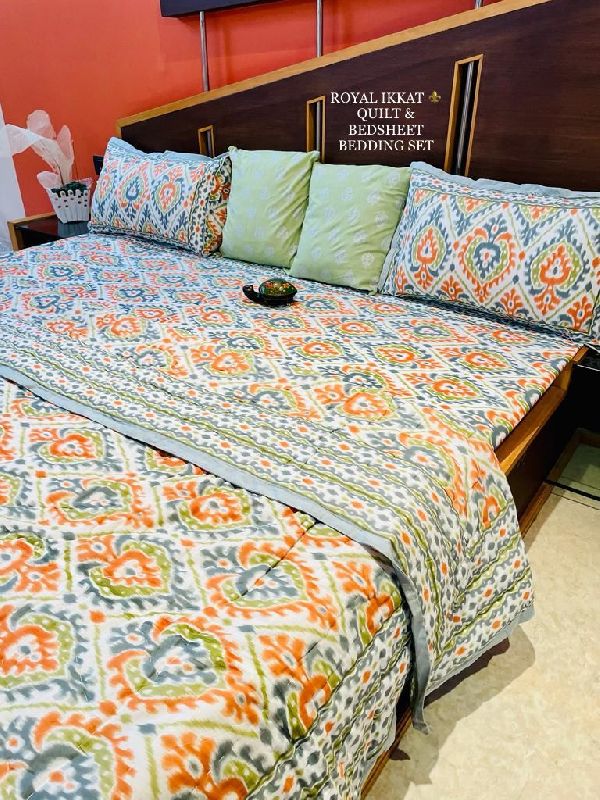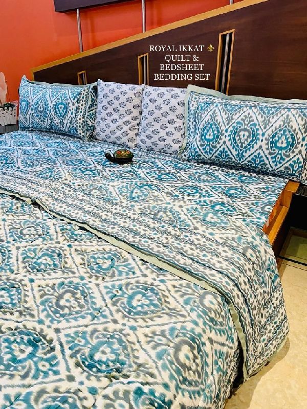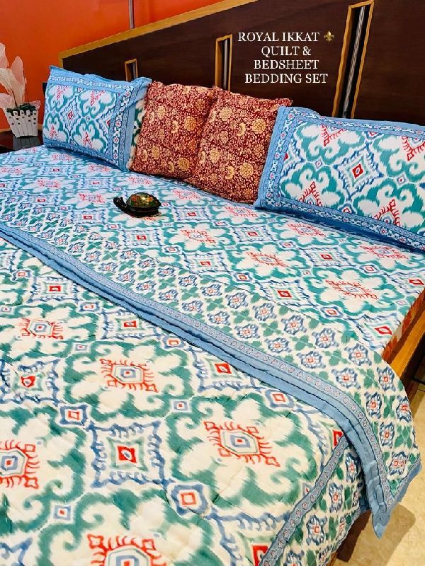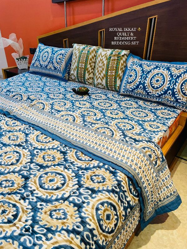 Shyam Ji Textile is a manufacturer, supplier, and exporter of the best quality bedding sets. We have specialization in Screen Printed Cotton Bedsheet, Ikat Printed Cotton Bedsheet, Hand Block Printed Cotton Bedsheet, Floral Printed Cotton Bedsheet, Hand Block Printed Cotton Quilt, Cotton Quilted Bedcover and Cotton Quilted Bed Cover with Pillow. Came into being in the year 2019 as a small fabrication unit, the company now has turned into the most rewarded and pioneer manufacturer of cotton bed sheets.