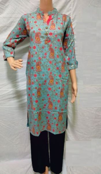 Viswamir Industries is one of the most celebrated names in the market of Kolkata. We are in the business of manufacturing, exporting, and supplying the best quality ladies kurtis, rayon palazzo, fancy dupattas, and rayon printed kurta palazzo set. We offer several types of ladies kurtis such as printed cotton kurti, 3/4 sleeve printed cotton kurti, 3/4 sleeve printed rayon kurti, cotton slub printed kurti, etc. Our ladies kurtis are best known for their fine quality and shrink resistance. We provide many rayon palazzos like rayon plain palazzo, rayon printed palazzo, and rayon printed palazzo with pocket. We are offering all these products at the most affordable prices. Dial our numbers now to connect with us.