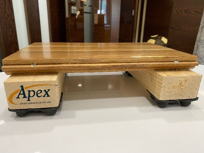 Apex -Air-Cush Sports Wooden Flooring comes in two type grades "A" & "B", product has a total thickness of 85 MM thick with a 21 MM thick top wooden flooring, 45 MM thick Pine wood Batten/Runner & 19 MM Air-Cush rubber Pad. Its an Area elastic floor with high shock absorption and India's first wooden sports flooring having World Badminton Floor (BWF) Certification. Product comes with 7 years warranty