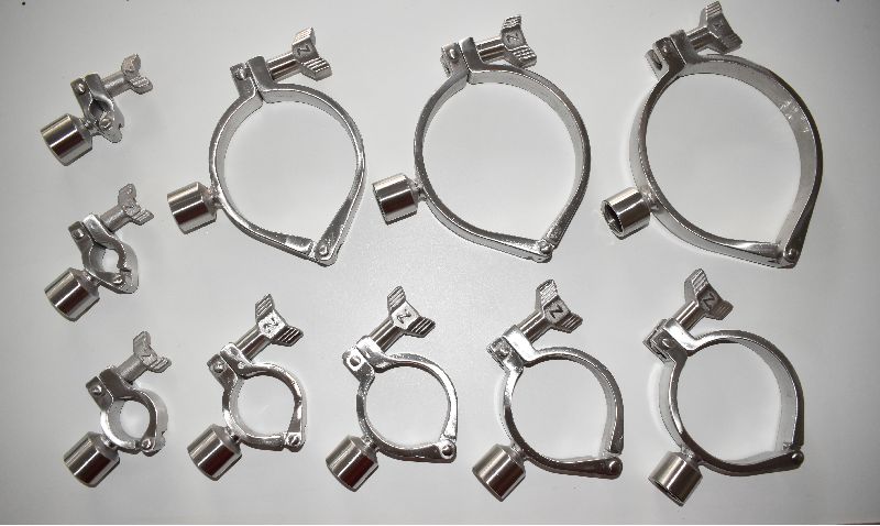 We are manufacturers of Stainless Steel Heavy Duty Pipe Holding Clamps, since last 29 years. We manufacture pipe holding clamps, by lost wax investment casting process. Following is whole assembly of pipe holding clamps: a) Clamp set, b) wing nut, c) Cap having ½ BSP threads welded along side clamp. Finishing: Matt Finish. Size: ½ inch to 4 inches.
