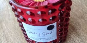 Transform your space with the enchanting scent and stunning look of our Red Bubble Jar Candle with Strawberry Fragrance and Daisy Wax Flower on Top. Order now and indulge in a fragrant and visually pleasing experience!