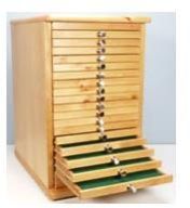 Capacity 1000 slides Stream line slide cabinet consisting of 11 drawers to hold slides each in vertical poition.