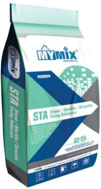 "MYMIX - STA (Stone Tile Adhesive)" is a polymer modified heavy duty thin-set adhesive for fixing vitrified tiles, natural stones, Marble, granite for interior and exterior floor and wall applications as well as building facades. High flexibilityand superior bond strength makes "MYMIX - STA" the best choice for vertical stone cladding.