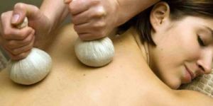 Cotton cloth boluses are made with minced herbal leaves, coconut gratings and lemon warmed in medicated oil. These bundles are then steamed and the fomentation is patted rhythmically all over the body for sudation.