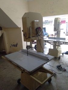 Meat and Bone Cutting Machine Model RBCM-5 For thin body sections Trans & vertical for Gross anatomy sectional study. Useful preparing specimen of big size in anatomy and meat departments. Fitted with large moving table & extension table operated on ball rollers. The table is made of thick S.S. sheet with special heavy axles for easy and firm movement size of cutting table : 785 x 585 mm approx. Supplied complete with one blade, starter, cord and plug suitable to work on 220 V, single phase, 50 Hz, AC supply.