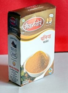With outstanding storage facilities, we are capable of making fast and urgent requirements of the customers. Owing to our automated and spacious infrastructure, we make systematic packaging followed by delivery to the clients in set time. Enlisted amidst the renowned Suppliers of Mak Pure Dhaniya Powder, we cater to varied demand of the customers in this sphere.UsagesIn Indian cuisine, coriander is mainly used for taste. Frying, roast-ground coriander powder in oil gives the characteristic 'curry' flavour. Coriander seeds have diuretic properties. It alleviates gas and tones the digestive tract.PackagingAvailable In: 15g, 25g, 50g, 100g ,200g