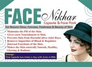 Face Nikhar is an Ayurvedic Skincare providing a simplistic skincare regime that really works. Face Nikhar works from deep within your body to help remove all the impurities present in the blood that cause pimples, blackheads, boils, acne, cysts, spots and other skin problems. It increases blood circulation and helps your skin to stay healthy and clear. Face Nikhar also acts as a liver stimulant and detoxifies this vital organ with the help of the herbs Bhunimba and Katuki. By detoxifying the liver and cleansing the bloodstream, Face Nikhar increases resistance to skin infections.Name PackingFACE NIKHAR CAP (For extra fairness & glow acne pimples & blemishes) 10X10 Cap.There are twelve herbs in this unique combination formulated to provide a totally safe and natural healing preparation to eliminate toxins from the bloodstream and cleanse the entire system resulting in a healthy and radiant complexion.Skin speaks about the health is an old proverb. To understand its truth try to recall glowing face of someone, by just watching his face you can tell how much happy and healthy he is! Skin is the largest organ of the body and gives an outlook of your inner body to the rest of the world. Skin covers the body, gives security from the ups and downs of the outer world. Along with this it also makes the Aura surround the body. What is inside one can tell just after looking at the body, just like a cover of book, which can tell you what inside the book is!