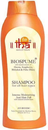 Product Description :IHA Biospume is a perfect natural recipe for harmless care & shine for all hair types. Fortified with natural conditioners & nourishers like heena, shikakai, False Daisy, Catechu, Soapberry, Spikenard and Hibiscus, Biospume