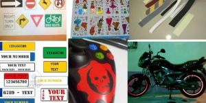We make readium sticker cuttings, pvc sticker designs, sign boards, pvc boards, labels and logos for vehicles, builders and factories.