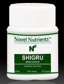 Promotes circulatory system and immune system active constituents main constituent is vitamins a and c , flavanoids , egcg ( epigallocatechins gallate ) minerals such as calcium, phosphorous and magnesium product description novel nutrients shigru capsules contains “moringa oleifera dry extract & powder”. Moringa has been used for long time in preventative medicine, for liver, kidney, stomach and thyroid problems. Moringa oleifera is a complete food, with more vitamin a than carrots. More vitamin c than oranges. More calcium than milk. More iron than spinach. Moringa oleifera has strong antioxidant properties, said to guard against skin cancer and prostrate growth. Moringa is said to prevent the growth of cysts, tumors and glands. Health benefits promotes energy & healthier blood naturally helps to maintain healthier blood sugar levels within a normal range helps to maintain healthier blood pressure levels within a normal range boosts energy levels and increases vitality increased focus, mental clarity and stamina promotes healthy circulatory system & boosts the immune system improves mobility and flexibility & recover faster train harder promotes healthy circulatory system reduce different body pains. It proved effective for treating arthritis, rheumatism, joint pain, migraine and other headaches. Overall well-being dosage take 1 or 2 capsule twice a day after meals or as directed by your physician.