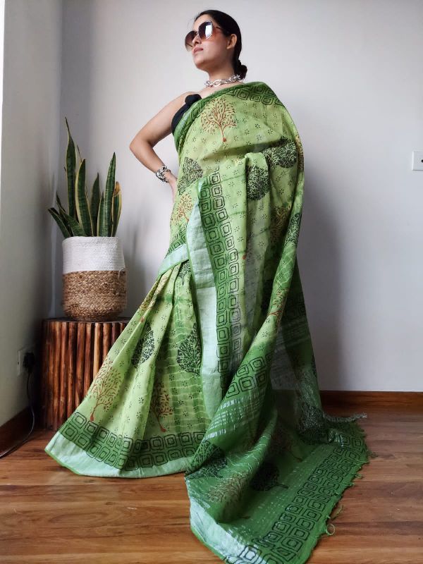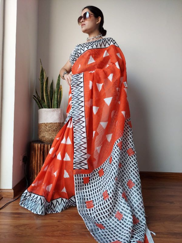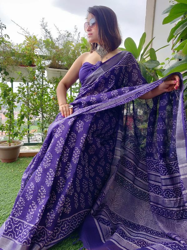 Printed Linen Saree