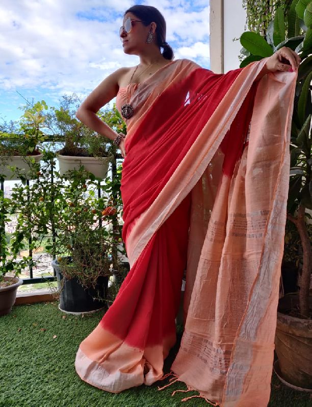 Linen Slub Printed Sarees