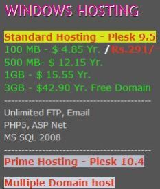 100 MB - $ 4.85 Yr. /Rs.291/-