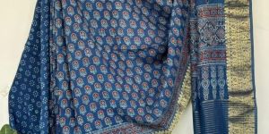 Ajrakh print hand block Dola silk saree with blouse pc
