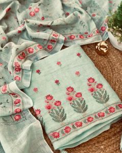 Cotton Linen Embroidery Work Suit Pcs