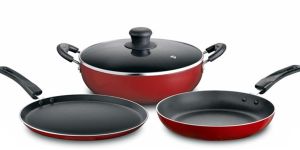 combination : fry pan - 24 cms - 1 no kadhai - 24 cms - 1 no dosa tawa - 28 cms - 1 no wooden spatula - 1 no