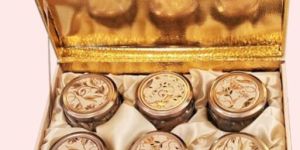 Dryfruits Gift Box features a premium assortment of the finest quality dried fruits, for their taste and freshness. It contains six round containers with lids, each adorned with intricate white and brown patterns. These containers are filled with assorted dry fruits or nuts. Dried fruits are a nutritious snack option, rich in vitamins, minerals, and antioxidants, making this gift a perfect balance of taste and health.