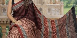 Ajrakh Cotton Hand Block Printed Saree