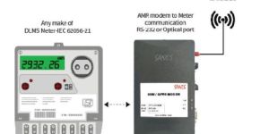 SANDS make of AMR Modem SAM-1101 is an intelligent device that can be connected to any make of electronic energy meter, which is compliant to DLMS – IEC 620156-21 standard by means of optical/ RS232 port. The meters can be located in either consumer premises or distribution transformers. The modem draws its power from the meter terminal block and connects to the communication port of the meter. Thus this addon modem is non-intrusive and can be retrofitted easily to any meter.
