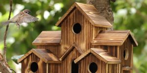 We offer a high-quality Pine Wood Bird House designed for outdoor bird feeding. This standard hut features small food bowls, measuring 17 inches in length, 12 inches in width, and 17 inches in height. Packaged in a sturdy cardboard box, this bird house is perfect for attracting feathered friends to your garden. Ideal for manufacturers, exporters, suppliers, and retailers in the birdhouse industry.