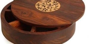 ROUND SHAPE WOODEN BOX WITH 9 COMPARTMENT FOR SPICE