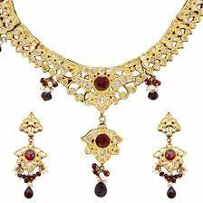 This Gold Kundan Necklace Set is made from choker- armlet (Bajuband). This Gold Kundan Necklace Set is made from a fine piece in gold (22 carat) in Kundan. The Gold Kundan Necklace Set is having its weight of 43 grams, having an exquisite semiprecious stone set in middle.