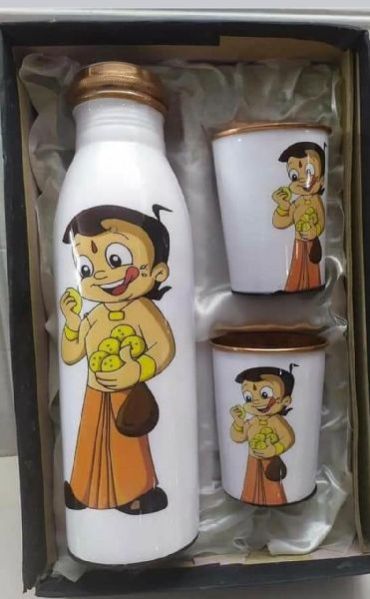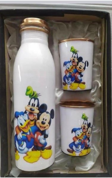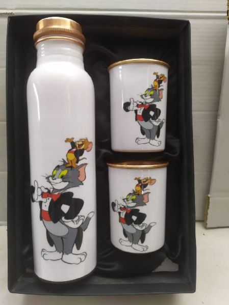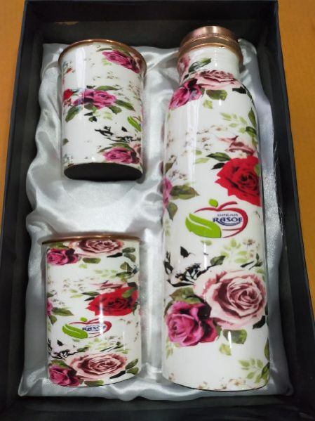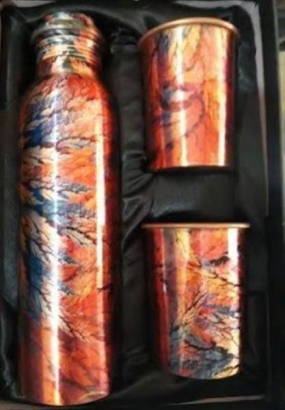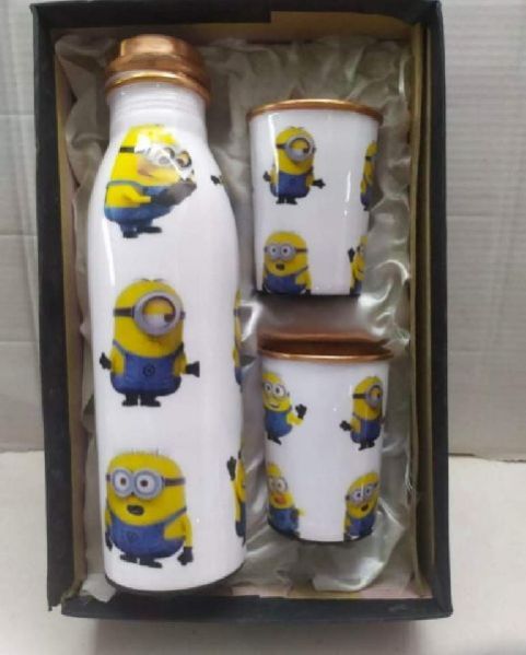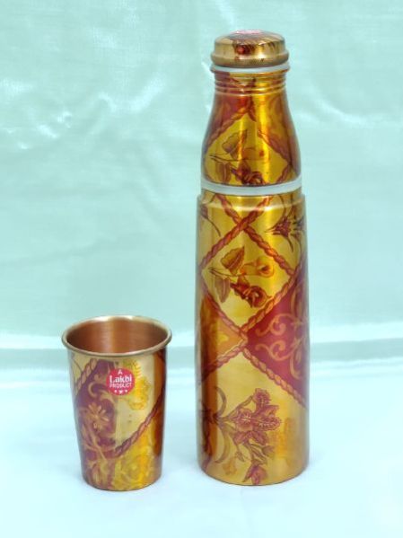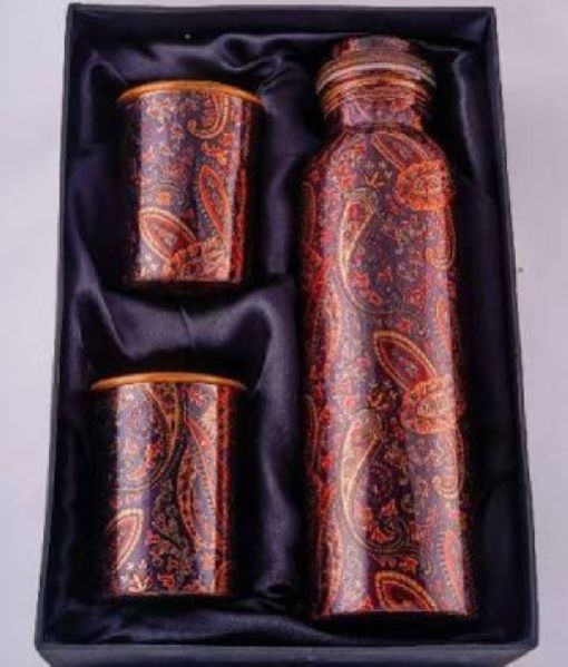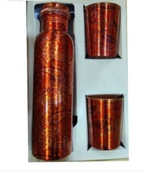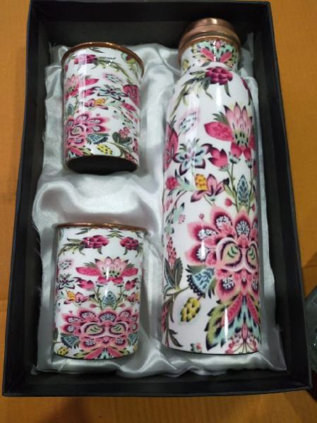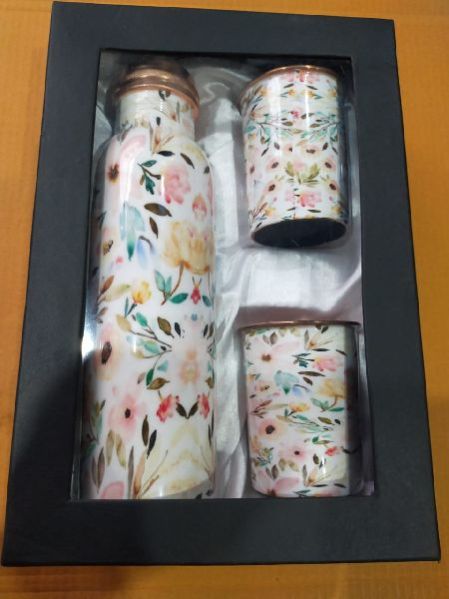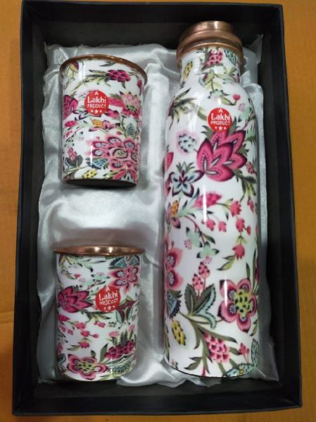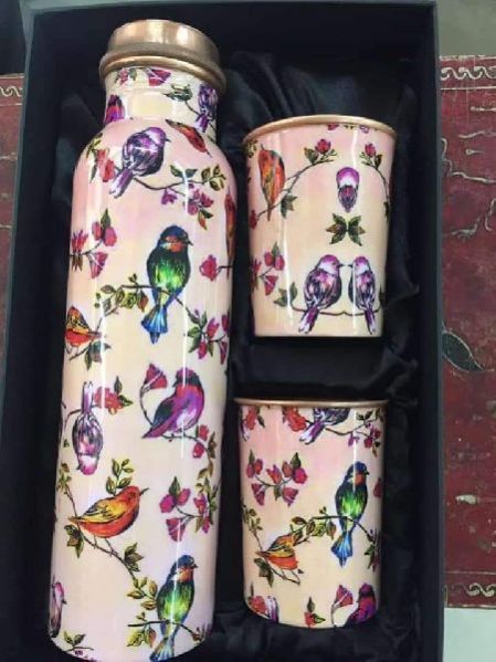 Printed Copper Water Bottle & Glass Set