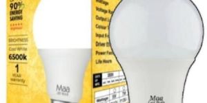 Maa Led Bulb 9Watt with 1 Years warranty Color Temperature 6500K (Cool Day light) Best Quality led bulb with 900 Lumens , Long lasting- greater than 5000 days efficiency 900 lumens, 85% power saving. Product Highlights LED B22 Bulb Base 9Watt LED Bulb Power Consumption: 9 W Cool Daylight (6500-7500K) Light Color: White 900 Lumen Voltage Ac 80 to 230V Lumen Efficacy 100 lm/W Warranty Warranty Summary : 1 Year warranty