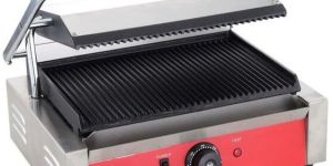 Commercial griller offered for Sandwich grilling. Outer body constructed in Stainless Steel . Top and bottom casted grooved plates. High performance heating element provided. Griller equipped with thermostat control and rotator switch.