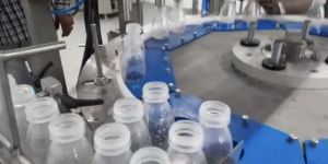 In our Automatic mineral water bottle filling machines are designed for optimum speeds based on 1 liter pack size for Treated Water and 500 Ml for Juice & Non Carbonated Drinks. The material of construction is SS 304 for the Frame and outer panel. All Wetted Parts are in SS 316. The Human Machine Interface is PLC Control that makes the machine user friendly.