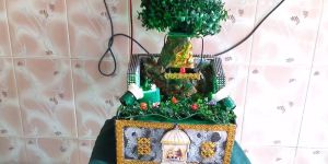Tabletop jula ganapathy funtain-made of simple plastics and polyuthrene foams.
