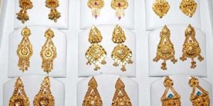 Earrings are recognized as one of the important accessories of every woman used to enhance the beauty and charm of a woman. Earrings are also becoming a part of fashion, the absence of earrings means incomplete make-up. We manufacture hand-made gold earrings with a variety of designs which add to a woman’s wardrobe. The gold earrings that we offer are available with authentic and contemporary look and designs. We use superior quality gold for the production of these earrings to provide better finishing and longevity.