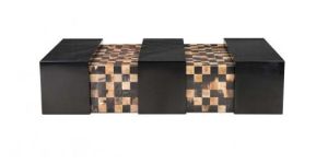 The arresting Pavia coffee table is a melding of architectural classicism of lacquered wood and the sophisticated oxhorn. Place it inside your living room and experience the distinctive handcrafted table for your beverage.