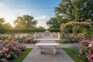 Stone Garden Bench with Table