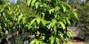 Murraya koenigii a handsome, aromatic, more or less deciduous shrub or small tree, up to 2.5 metres height and 15-40 cm. in diam, found almost black; leaves bipinnate Leaflet 9-25, ovate, lanceolate or somewhat rhomboid, irregularly crenate-dentate, acuminate, obtuse or acute, base usually oblique, almost glabrous above, pubescent beneath, glanddottted, strongly aromatic; flowers in terminal corymbose cymes, white, fragrant; berries sub-globose or ellipsoid, purplish black when ripe, 2-seeded. Fruits, round to oblong, 1.4 to 1.6 cm long, 1 to 1.2 cm in diameter; weight, 880 mg; volume, 895 microlitres; fully ripe fruits, black with a very shining surface; pulp, Wistaria blue 640/2; the number of fruits per cluster varying from 32 to 80. Seed, one in each fruit, 11 mm long, 8 mm in diameter, colour spinach green 0960/3; weight, 445 mg; volume, 460 microlitres.