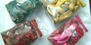 Scented pot pourrie in pouch, tin, card board box, jute bags, bouquets, ting ting, sea shells, stone & chips etc.
