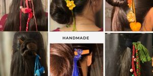 Floral Accents: Handmade jewelry incorporating floral designs, like earrings or hairpieces with fabric or metal flowers in yellow and orange, can enhance the festive vibe.
