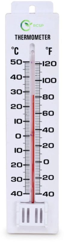 RCSP room thermometer mercury free accurate in ?&? calibration. this is use in greenhouses and conservatories. The thermometer can be hung from the hole provided in casing. It should be positioned in a shaded are out of direct heat & sunlight for accurate values. This room Thermometer is a simple yet effective tool for measuring indoor and outdoor temperature. The bold black graphics and red temperature indicators against the bright white housing make readings easily visible from across the yard. This features a weatherproof, precision thermometer tube and humidity coil for accurate readings. Shatterproof and weather resistant resin construction withstands the outdoor elements. Analog thermometer means never having to replace batteries or deal with cumbersome wires. The double scale has modern and stylish design. It?s easy to read the temperature in Fahrenheit and Celsius. The thermometer can be used anywhere: at home, patio, garden, kitchen, room, pool, office buildings, hotels, school, shops, warehouse, etc. Especially like a stylish and useful gift. Please feel free to contact us if you have any questions about our products.