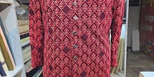 Step into refined wedding fashion for men with this maroon velvet sherwani, crafted for those who value elegance with a modern touch. This unique piece blends tradition with contemporary style, making it an ideal sherwani for groom or anyone looking for standout wedding attire or ethnic wear for men. Youll love how the premium velvet sherwani feels soft, comfortable, and rich, perfect for ceremonies like reception engagement, or any festive gathering. The expertly embroidered sherwani design features intricate patterns that highlight skilled craftsmanship and capture attention without being overpowering. Why choose this ethnic sherwaniMade from high-quality velvet for a luxurious feel Beautifully embroidered floral motifs for striking detail Classic silhouette that looks great on everyone Deep maroon color for versatility and sophistication Fusion style”perfect as an indo western outfit This men wedding sherwani is perfect whether youre shopping for yourself or searching for a meaningful gift for groom. The custom sherwani option ensures a tailored fit, so you feel confident at every celebration. Wear it confidently toWeddings”stand out as the groom or guest Reception engagement parties Special occasions and festive events How to style your velvet sherwaniPair with formal trousers or traditional bottoms Add statement accessories”a silk scarf or elegant brooch Choose polished shoes for a complete look If youre seeking a balance between tradition and trend, this sherwani is your answer. An exceptional piece for any modern mans ethnic collection, it effortlessly combines luxury, comfort, and authentic style in one”making it a top choice among wedding fashion men prefer.