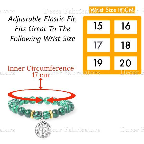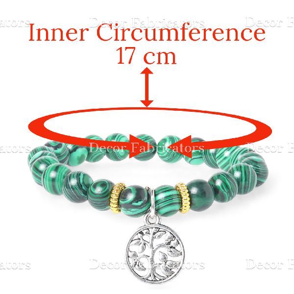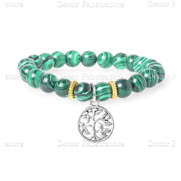 Semi Precious Malachite Stone Bracelet with Silver Charm