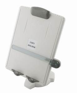 In-line document holder for desktops and laptops. Keeps documents between monitor and keyboard to help reduce head, neck and eye movement. Wide, transparent backplate supports wide & heavy documents. Skid-free base. Angle and height adjustable.