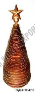 Copper Bronze Metal Ribbed Christmas Tree Sculpture with Star Topper
