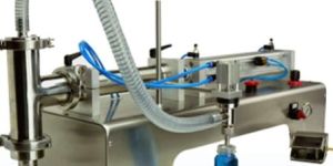 This machine is the semiautomatic piston type liquid filling machine This machine is reasonable in design, small and exquisite in model, the pneumatic part adopts the pneumatic components of Janatics make. The part contacting materials is made of 316L stainless steel. Both filling volume and filling speed can be adjusted at will, filling accuracy is high. Filling head adopts anti-leakage and lifting filling device.