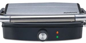 Adjustable Temperature control Knob and Floating hinges for even cooking on both sides