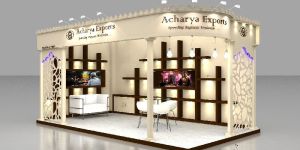 This exhibition stall design creative and fabricated by arts n crafts in ihgf spring 2017 for acharya exports, mumbai and the stall is award best design and display.