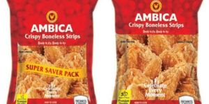 Ambica kitchens strive to bring the best combination of nutrition and great taste. Each strip is a boneless portion of breast, flavoured just right by our chefs and then coated delicately so that you can enjoy the rich taste with a crunch in every bite. Moreover all Ambica products are processed and packed at a state-of-the-art facility to ensure the best quality and taste.