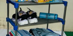 We offer a versatile 3 Tier Multipurpose Storage Utility Rack made of stainless steel pipes with plastic connectors in a sleek silver and blue color combination. This compact organizer is perfect for storing shoes with its 3 storage levels and foldable, portable frame design. Ideal for exporters, suppliers, and traders, this storage rack is strong, plain-patterned, and easy to use. Enhance your storage solutions with this stylish and practical storage rack that combines durability and functionality.