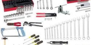 Tool Set Technical Description Consists of a filled tool box made of plastic. The following tools will be supplied, one piece each: pipe cutter, adjustable spanner, crimping tool with threaded cutter for bolts, tube flaring unit, universal deburrer, side cutter, cable stripping knife, crimping tool for wire ends, wire stripper, set of hexagon keys (7 pieces), set of pipe bending pliers (3 pieces), set of screw drivers, completely insulated (4x slotted, 2x Philips), set of combination spanners (19 pieces), a leakage detector for several refrigerant gases and a voltage tester.